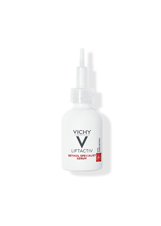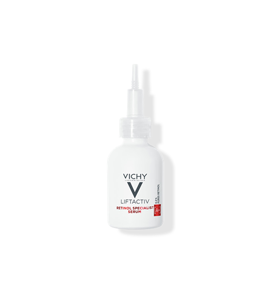 SCHRITT 1: Trage das Serum mit Retinol einmal täglich abends auf die gereinigte und trockene Haut auf. Augen- und Lippenpartie aussparen.