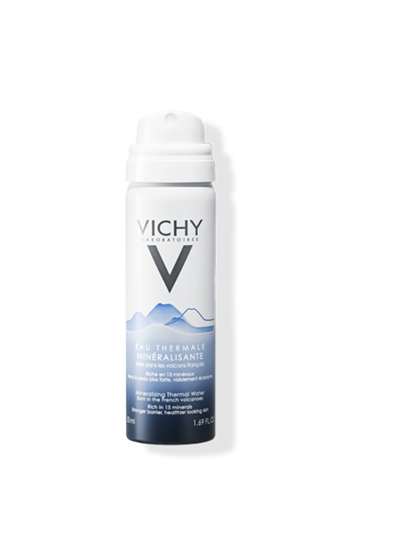 Erfrischendes Thermalwasser-Spray mit vulkanischem Wasser aus Vichy - stärkt die Hautschutzbarriere, beruhigt und sorgt für einen rosigen Teint.