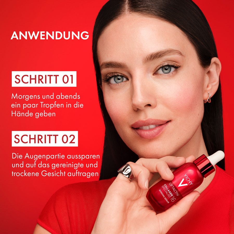 Vor der Verwendung des LIFTACTIV Collagen Specialist 16 Bonding Serums das Gesicht gründlich reinigen und anschliessend abtrocknen.