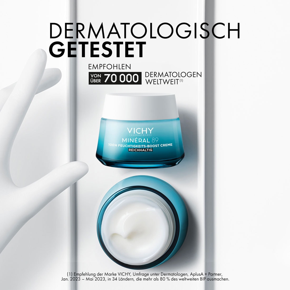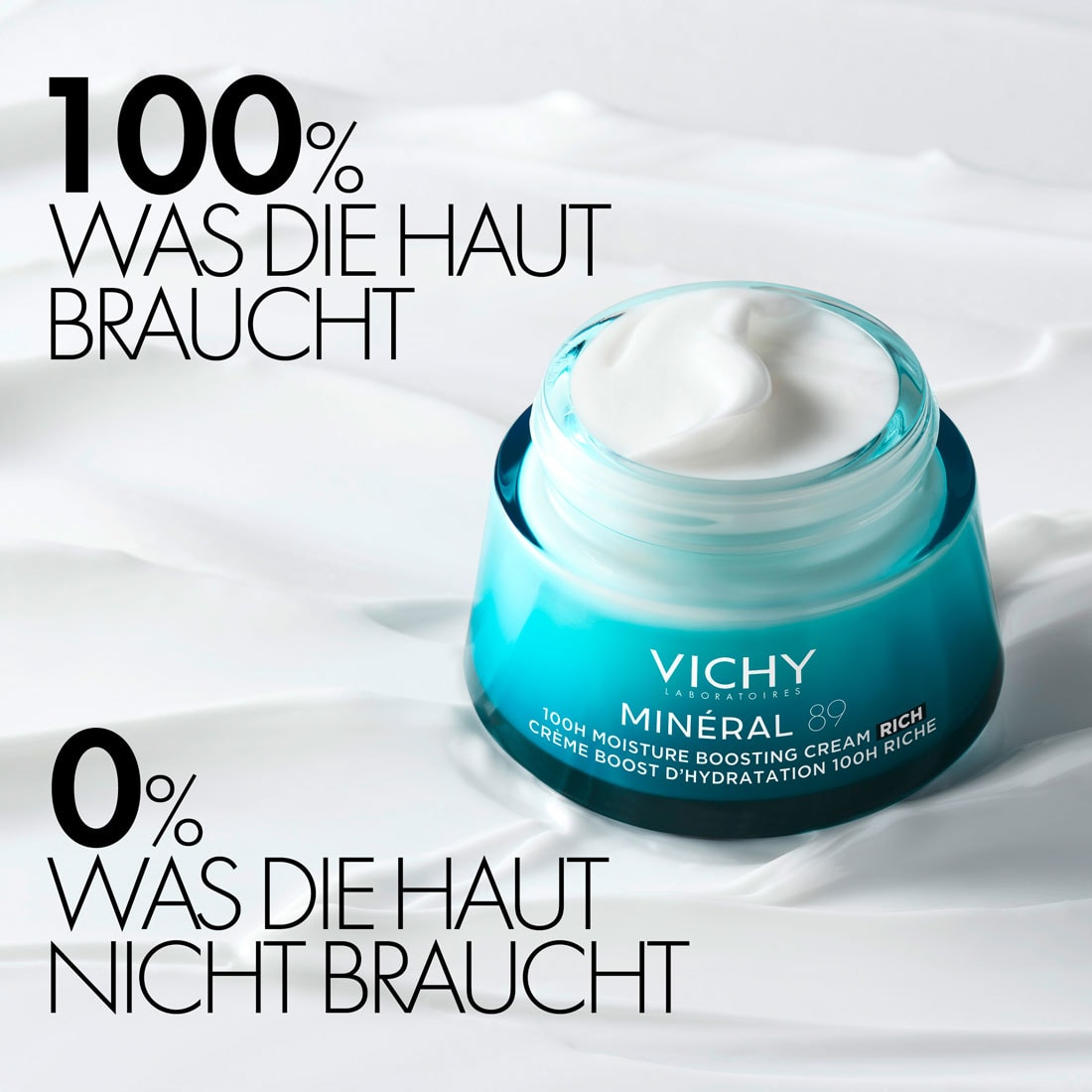 Die Vichy MINÉRAL 89 100H Feuchtigkeits-Boost Creme mit Duft versorgt die Haut intensiv mit Feuchtigkeit und stärkt ihre Widerstandskraft. Dank der Kombination aus Hyaluronsäure, Mineralien, Lipiden und Vitaminen bleibt die Haut bis zu 100 Stunden hydratisiert und besser geschützt vor äusseren Belastungen.