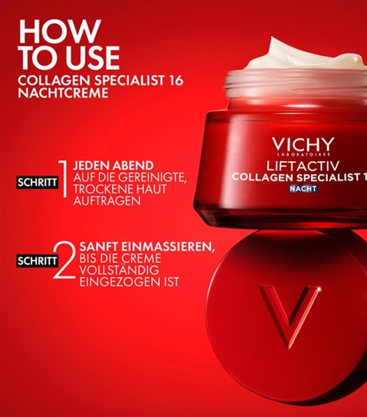 Schritt 3: Trage die LIFTACTIV Collagen Specialist 16 Nachtcreme mit kreisenden Bewegungen auf Gesicht, Hals und Dekolleté auf und lass sie kurz einwirken.