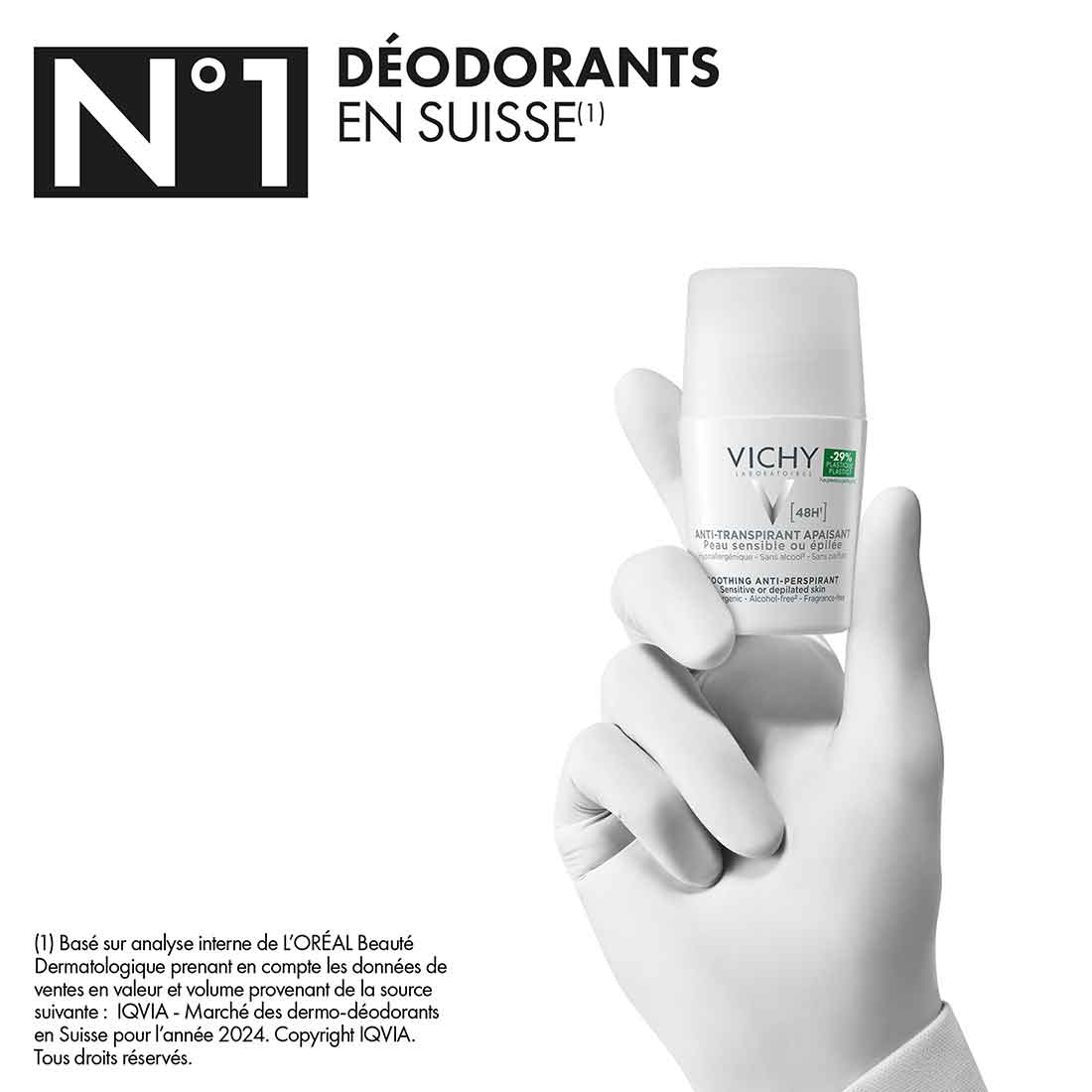 Anti-transpirant pour peaux sensibles avec efficacité longue durée 48h.