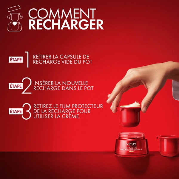 Votre pot est vide? Remplacez-le simplement par une nouvelle recharge dans le contenant en verre. Et voilà! Si vous souhaitez appliquer du maquillage après la crème, attendez au moins 5 minutes.