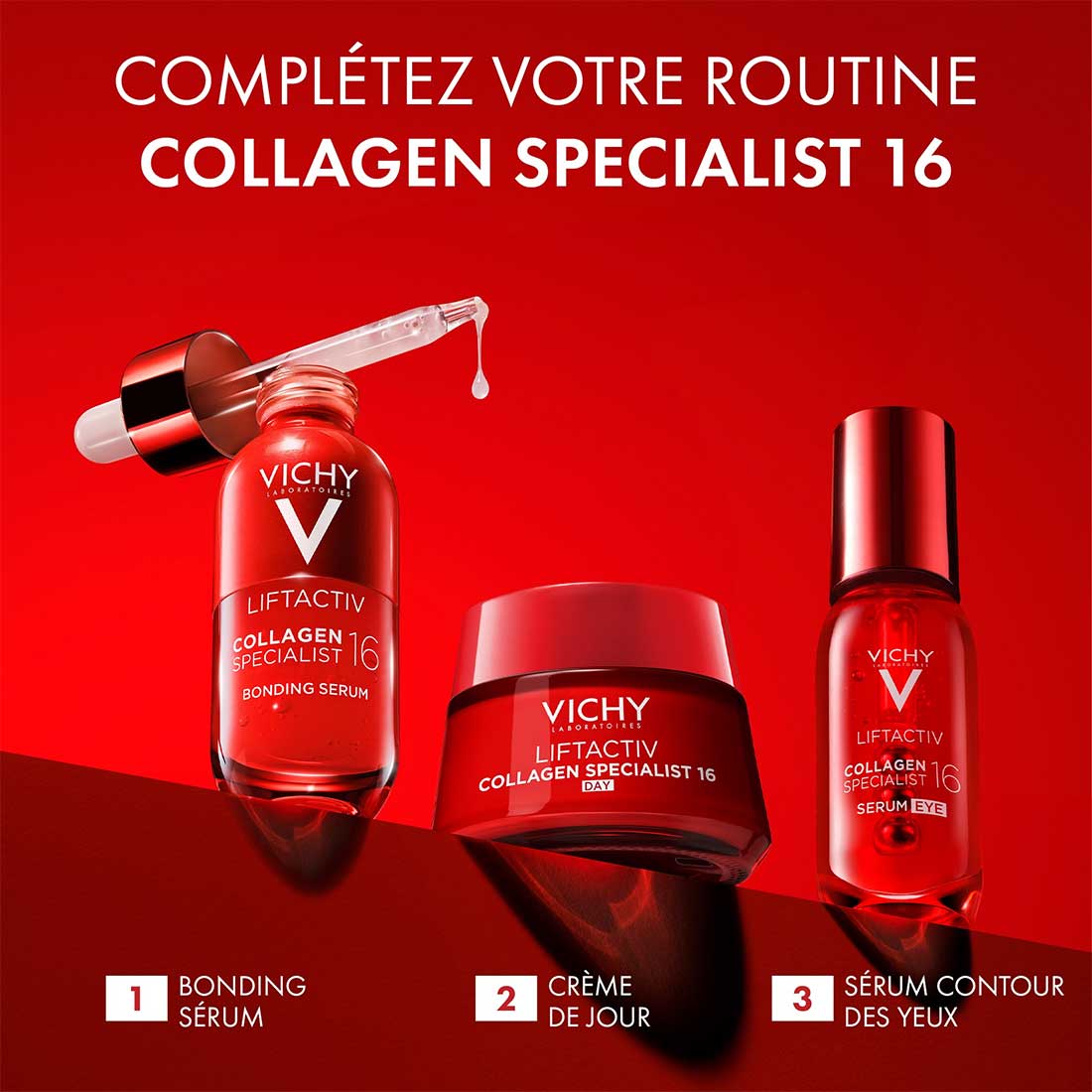 Appliquez matin et/ou soir sur le contour des yeux propre et sec, juste après le sérum LIFTACTIV Collagen 16 Bonding.