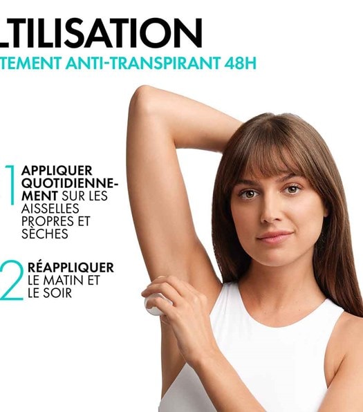 Appliquer quotidiennement sur des aisselles propres et sèches.